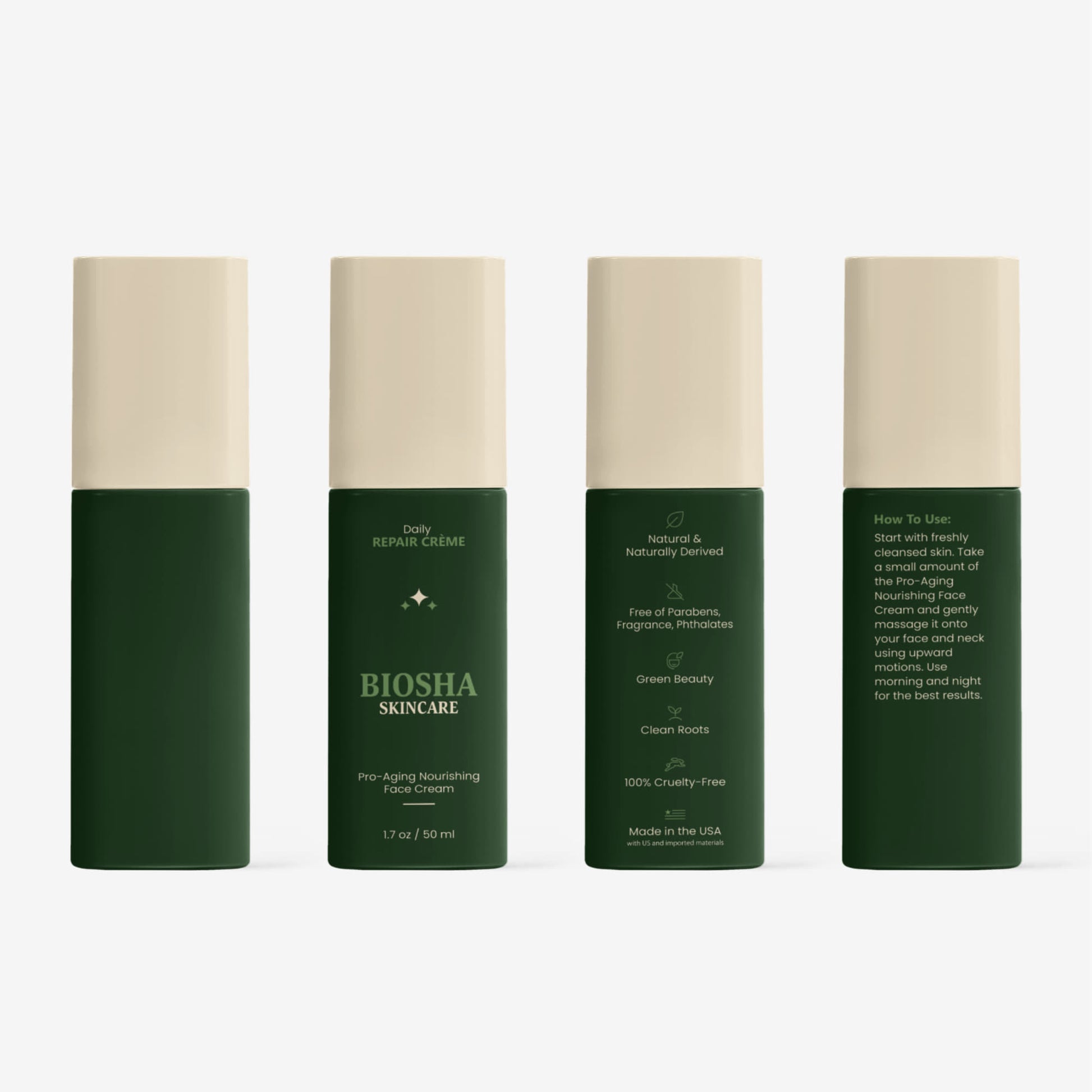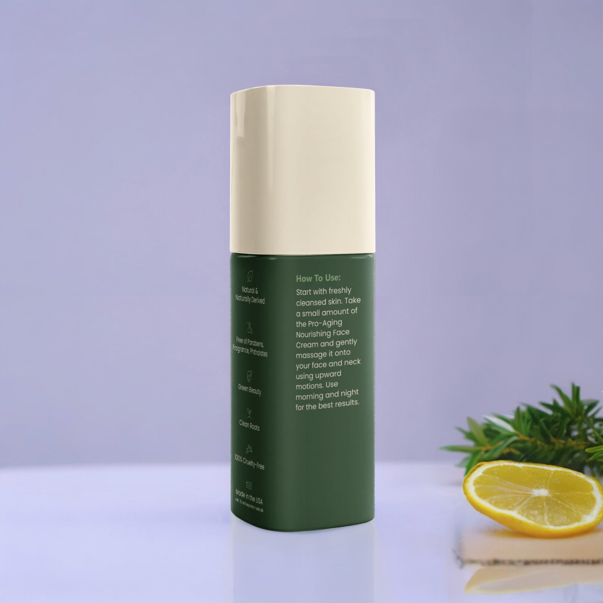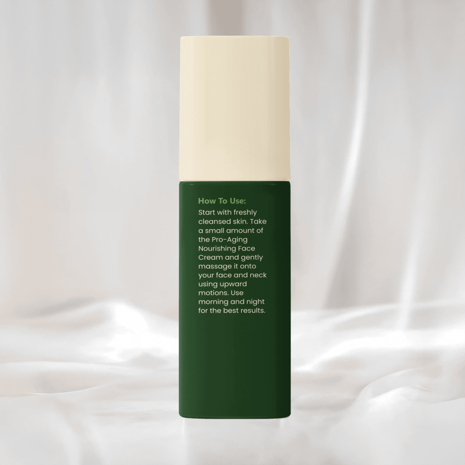 Start with freshly cleansed skin. Take a small amount of the Pro-Aging Nourishing Face Cream and gently massage it onto your face and neck using upward motions. Use morning and night for the best results.