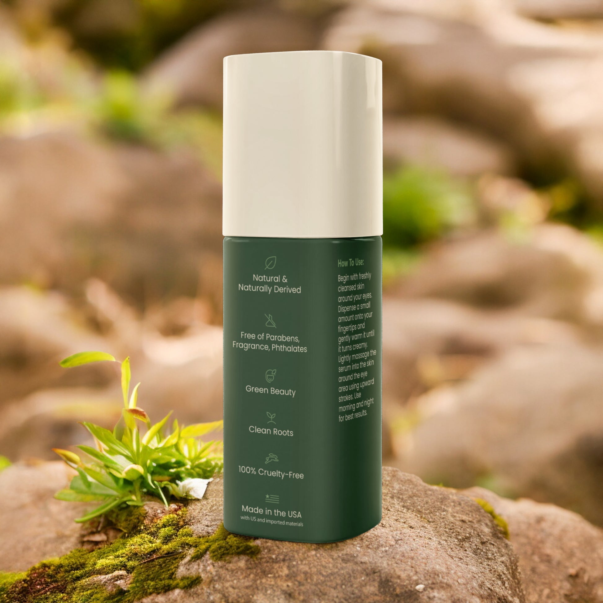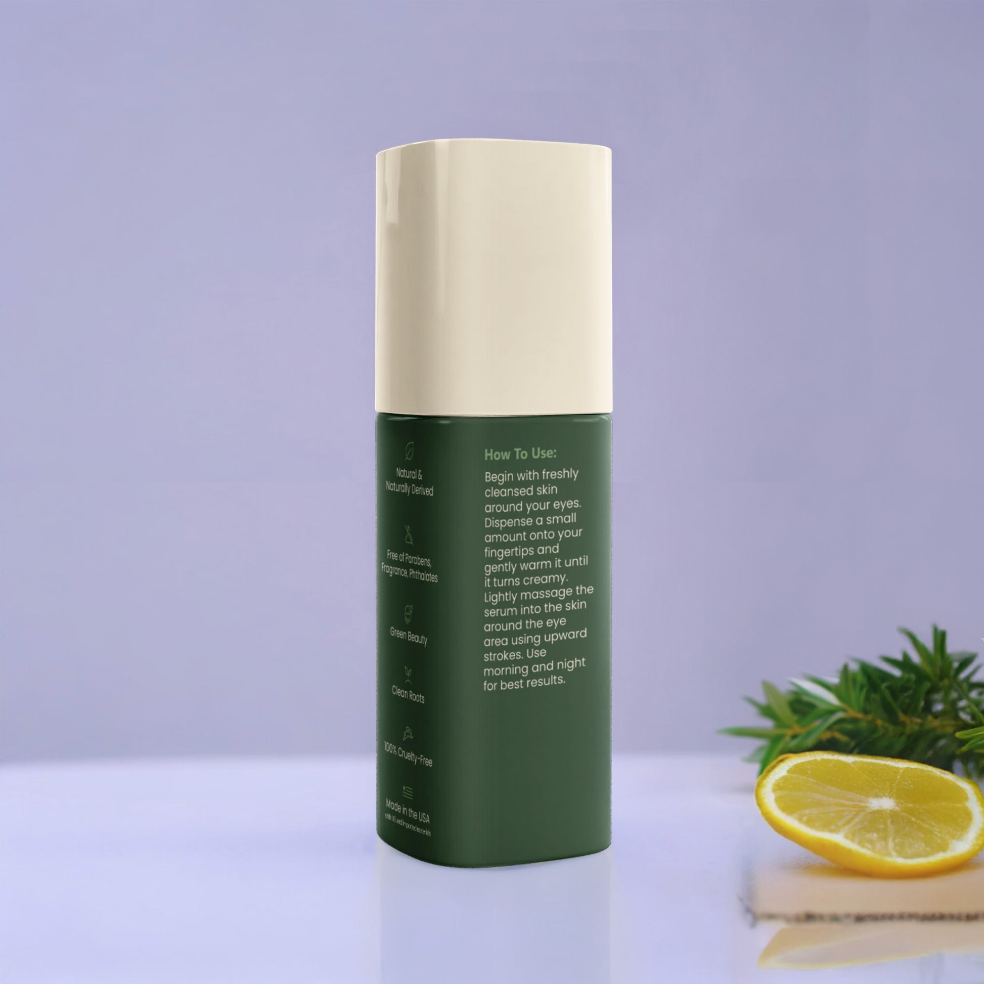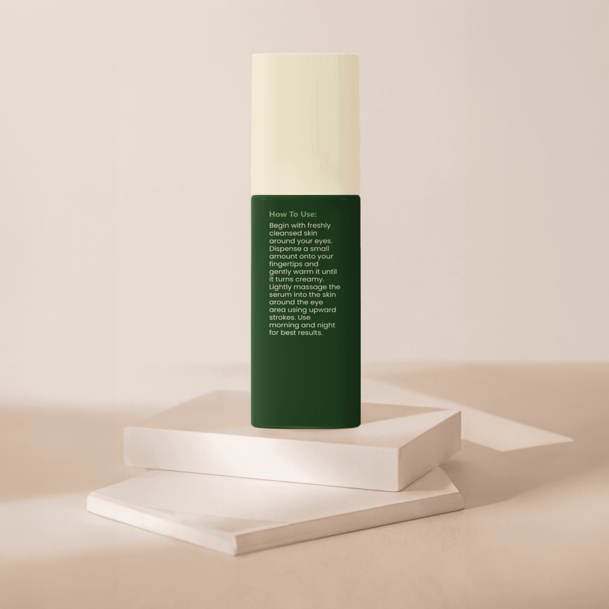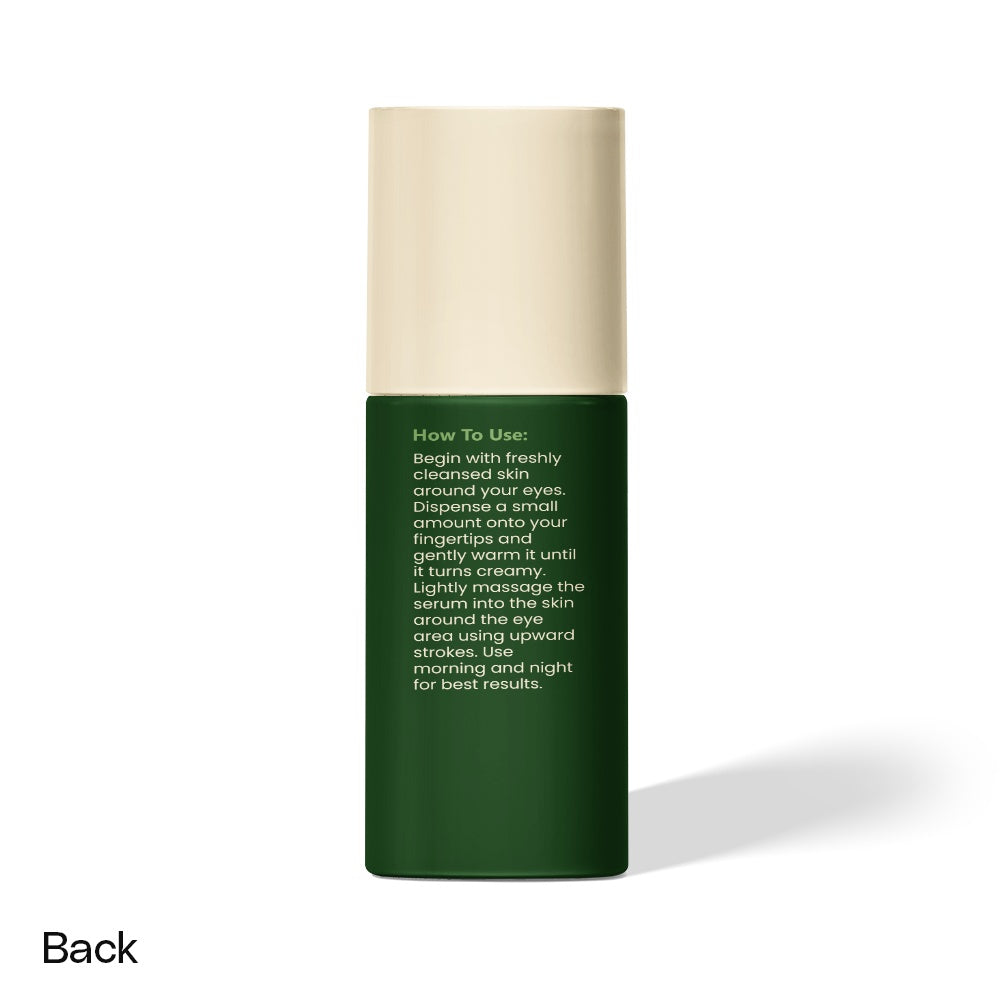 Begin with freshly cleansed skin around your eyes. Dispense a small amount onto your fingertips and gently warm it until it turns creamy. Lightly massage the serum into the skin around the eye area using upward strokes. Use morning and night for best results.