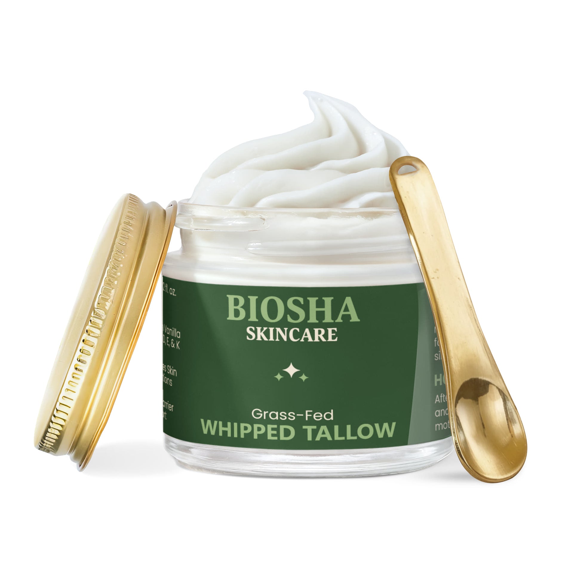 Grass-Fed Tallow – Rendered from the fat of grass-fed beef, this animal fat is rich in skin-compatible fatty acids and vitamins A, D, E, and K, deeply nourishing and repairing the skin.