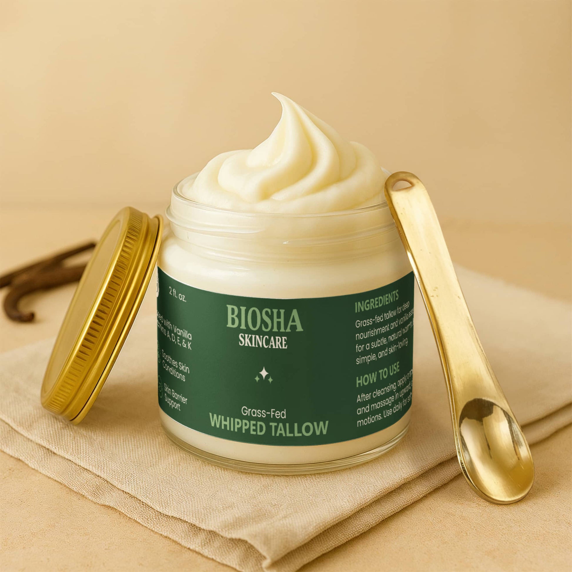 Whipped Grass-Fed Tallow Balm with Vanilla Bean