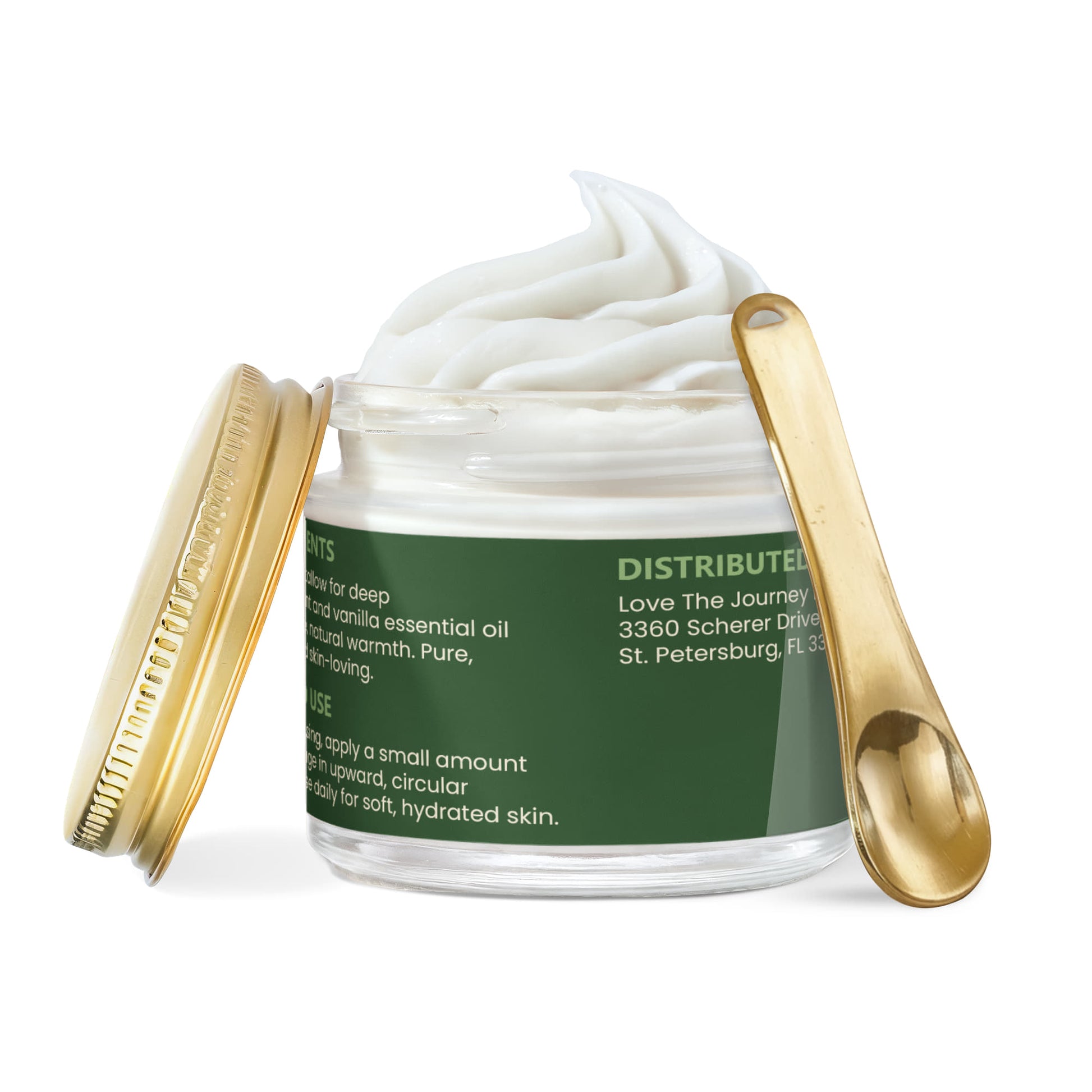 After cleansing, scoop a small amount and massage onto desired areas using upward, circular motions. Use daily for soft, hydrated skin.